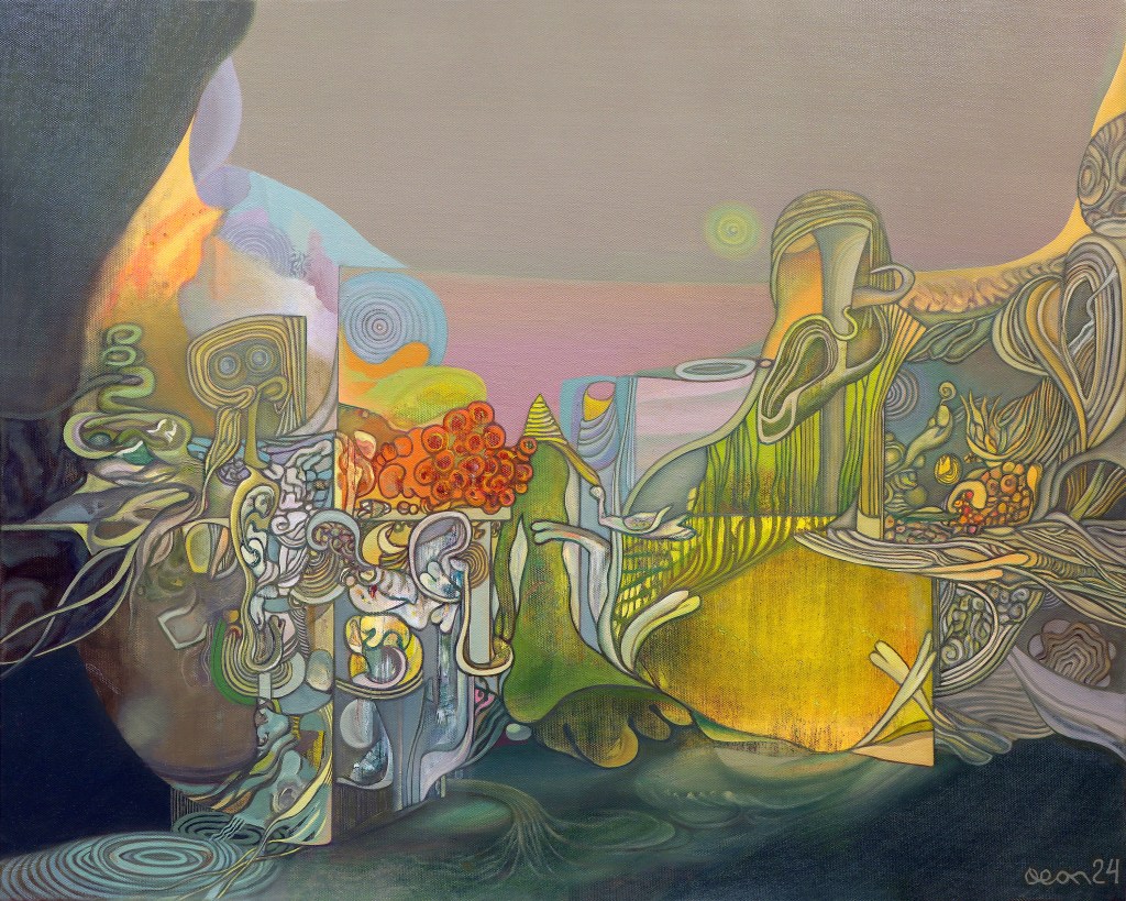 Alexey Adonin is a visual artist based in Israel whose practice centers on painting and works on paper. Working within abstraction and surrealist-informed image-making, Adonin builds layered compositions through intuitive brushwork, organic structures, and shifting spatial cues. The work explores perception, memory, and the tension between constructed and natural forms, often suggesting environments that feel simultaneously geological and psychological. Adonin trained at Glebov Art College in Minsk and has presented work in solo and group exhibitions, as well as in independent art and literary publications.