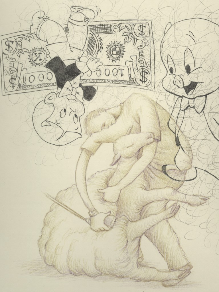 Don Swartzentruber grew up in an Amish Mennonite community in Sussex County Delaware. He left his Old Order tradition to attend art school. After earning a Master of Fine Arts degree at Vermont College of Norwich University he decided to revisit his roots with a collection of paintings and drawings called “Pop-Mennonite.” The work created a stir among Mennonites, especially in Canada. Mennonite Weekly newspaper called it “Weird. Disturbing. Bizarre.” Canadian Mennonite journal called it a “jarring juxtaposition of the sacred and the secular.” The work was exhibited at college galleries and museums. The original oil paintings are represented by Saatchi Art. https://en.wikipedia.org/wiki/Pop_Mennonite